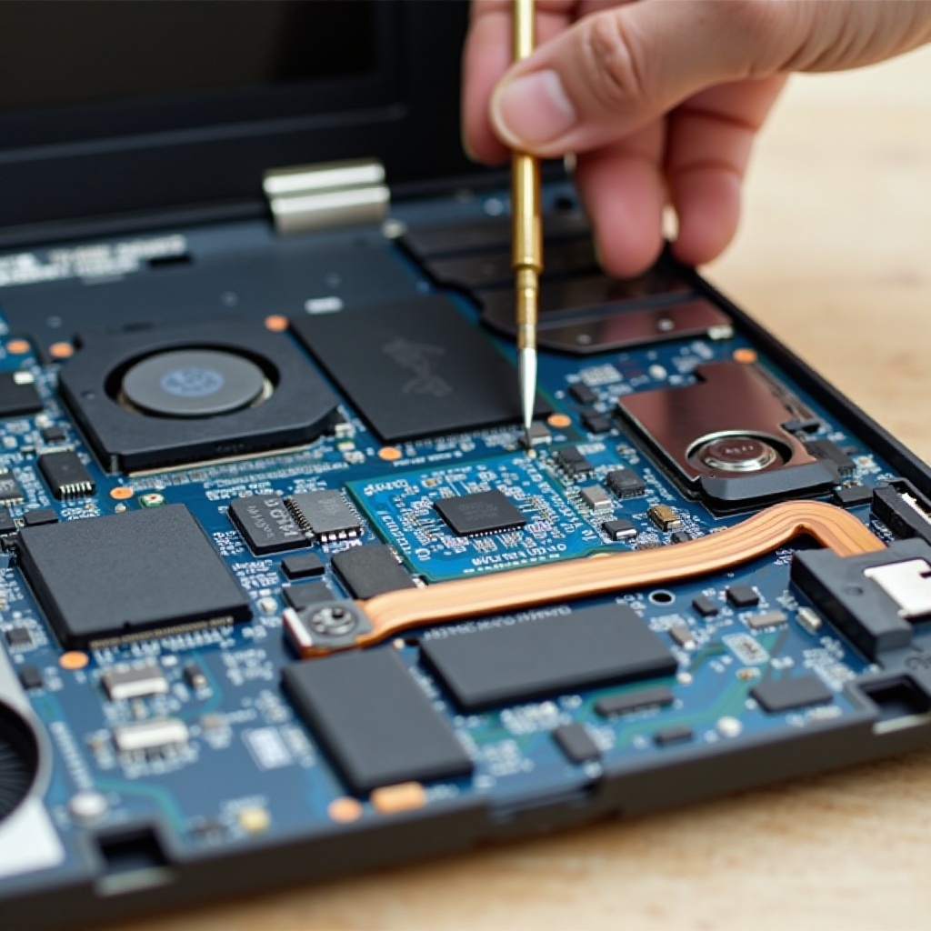 - Uw laptop veilig uitschakelen en demonteren: Begin met het uitschakelen van uw laptop en het loskoppelen van alle stroom. Draag een antistatische polsband om schade door statische elektriciteit te voorkomen. Verwijder voorzichtig het achterpaneel om toegang te krijgen tot de interne componenten.